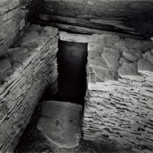 Benoit’s photographs of Anasazi architecture, depicting hollowed-out natural cave villages on top of mesas or at the base of canyons, explore the intrigue imbedded in the unsolved demise of the Anasazi people. His photographs of granaries, private and public spaces, and communal rituals reveal aspects of everyday life during this time period. Anasazi culture thrived until the 1300s. Their population later declined, possibly due to drought and intertribal warfare.