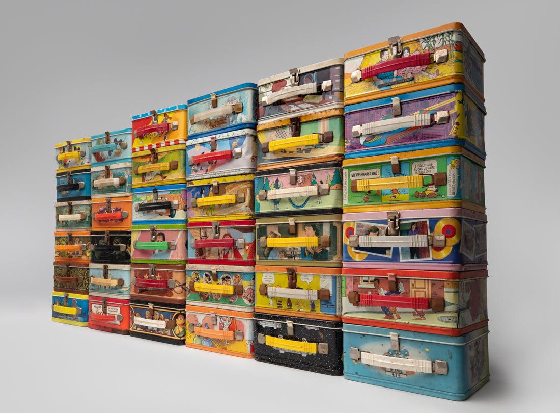 The Unknown Museum was conceived as a hands-on experience, encouraging visitors to physically interact with stacks and shelves full of items. During the museum’s early years, it acquired children’s lunchboxes in earnest because of their availability, utility, and nostalgic value. Found at garage sales, flea markets, and estate liquidations, lunchboxes were obtained in mass quantity and became one of the museum’s signature objects. Collected long before they became collectable, the Unknown Museum saved many of these iconic metal lunchboxes from simply being discarded. McGowan also combined conceptual art with physical utility; towering columns of lunchboxes, stacked from floor to ceiling at the museum on 39 Corte Madera Avenue in Mill Valley, kept sections of the deteriorating building’s ceiling tiles from falling onto the floor.