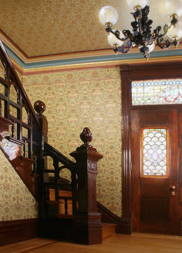 At their studio, they hand silkscreen hundreds of historic designs using oil-based paints with a small, dedicated staff of employees. Their most complex paper, St. James, requires seventeen individually applied colors. Bradbury & Bradbury Art Wallpapers also creates custom designs for state, federal, and international historic preservation projects as well as producing wallpapers for period films and television series. This exhibition celebrates Bradbury & Bradbury Art Wallpapers’ roots with six sumptuous Victorian-era room sets that feature both wall and elaborate ceiling papers—a unique specialty of the firm.