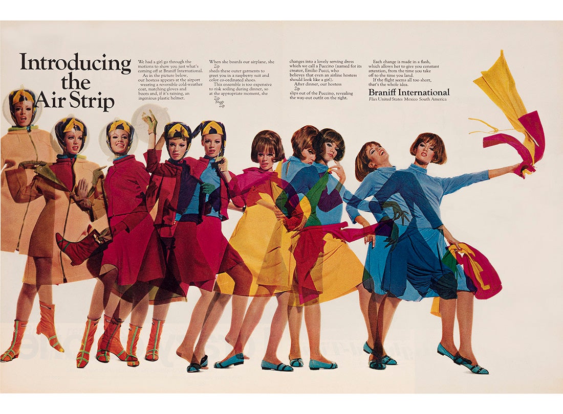 Introducing the Air Strip advertisement 1966 Mary Wells for Jack Tinker Associates paper, ink Braniff Airways Foundation L2017.2201.005