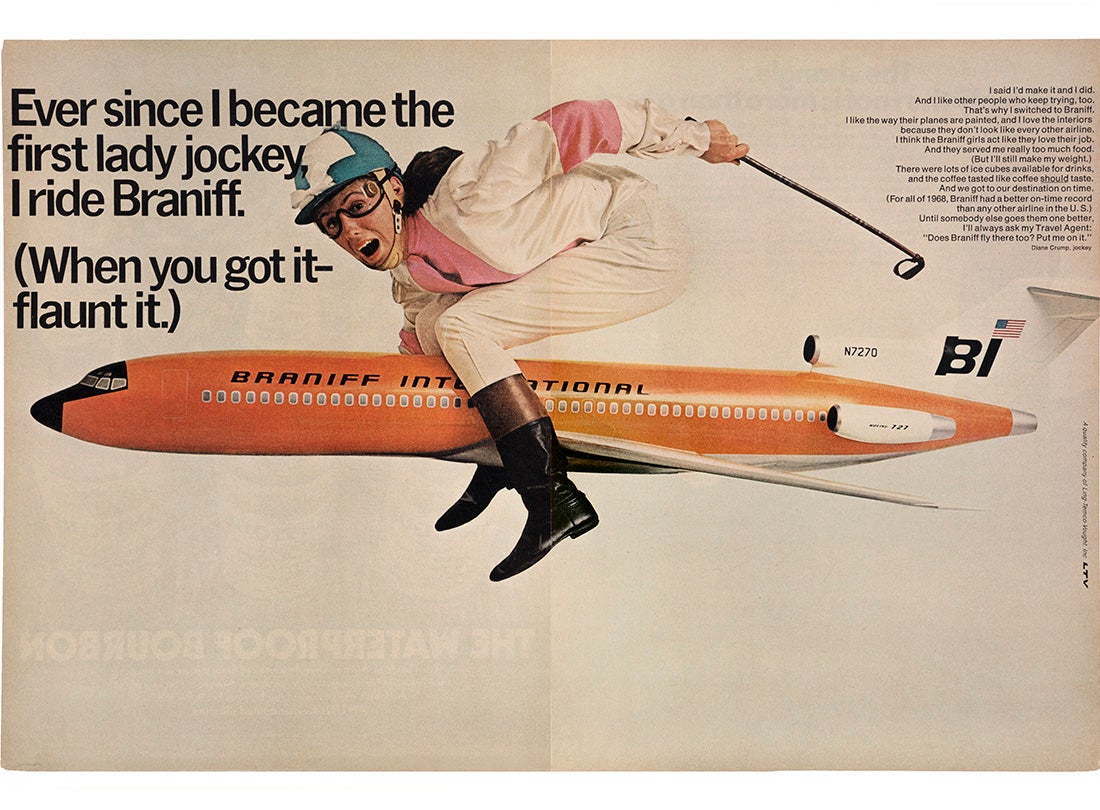 Ever since I became the first lady jockey advertisement 1969 Lois, Holland, Callaway paper, ink Braniff Airways Foundation L2017.2201.020