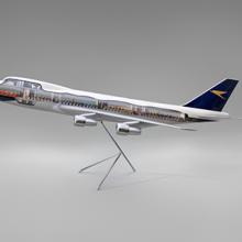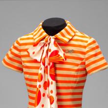 With the introduction of these “super jets” airlines updated liveries, uniforms, service, and branding. In promotions, carriers emphasized the superior technology and features of the widebodies, including their comfortable, quiet, and luxuriously appointed cabins reminiscent of large living rooms with spacious lounges and cocktail bars. Passengers were encouraged to spread out with ample leg room or roam through the expansive cabins. Newly introduced flight crew uniforms heralded the jetliners’ arrival as designers conceived of ensembles that reflected the era and the latest workplace fashion trends with form-fitting minidresses in vivid patterns, go-go boots, and plaid jackets in dazzling colors. This exhibition presents three of the first widebody jetliners introduced in the early 1970s, the Boeing 747, the McDonnell Douglas DC-10, and the Lockheed L1011 TriStar, as they were promoted by their manufacturers and five airlines that operated them: BOAC (British Overseas Airways Corporation), Pan American World Airways, United Air Lines, Continental Airlines, and TWA (Trans World Airlines).