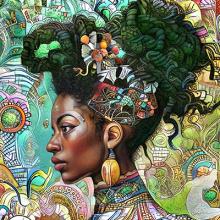 Afrofuturism, an artistic and sociopolitical liberation movement, examines the past, questions the present, and reimagines the futures of Black people. The term was first coined in the 1993 essay “Black to the Future” by writer Mark Dery. Afrofuturism explores the Black experience through a combination of science fiction, magical realism, mythology, history, and technology in genres ranging from literature and music to fashion, film, and visual arts. Afrofuturism may incorporate a range of components—from outer space to the natural world and popular culture.