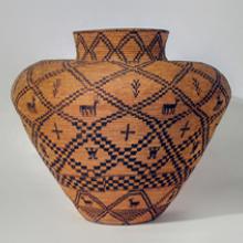 This exhibition spans the North American continent and features basketry from the Arctic, Northwest Coast, Plateau, California, Southwest, Southeast, and Northeast regions. Woven Legacies: Basketry of Native North America explores the diversity and beauty of this ancient craft—from traditional plaques, bowls, and gambling trays to rattle-lid baskets, woven teakettles, and other whimsical items.