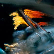 Already renowned for his evocative black and white imagery of the natural world made in the mid-and late-1950s, Bullock greatly altered the approach and appearance of his photographs in 1959. Inspired by a friend who was experimenting with lenses that were able to focus at extremely close range, Bullock modified an old 35mm Exakta camera to accommodate a dual-rail close-up bellows attachment. Using this system, he found he was able to focus “past” the object at hand and concentrate on the phenomenon of light itself. This discovery marked the beginning of a five-year period of intense creativity during which Bullock focused exclusively on producing what he called “color light abstractions.”
