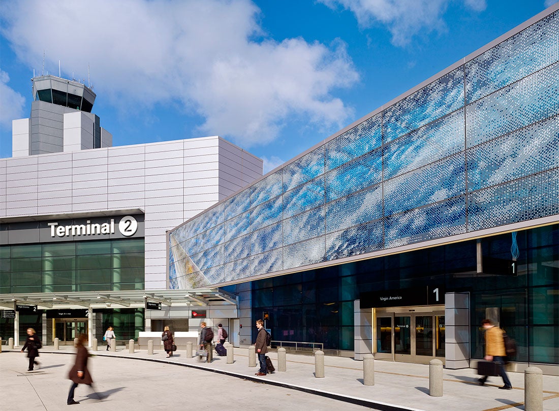 Norie Sato’s imagery was inspired by our relationship to clouds and flight. Specifically, her work delves into some of flight’s inherent qualities: ephemeral, abstract, pictorial, natural, man-made, symmetrical and changeable. The artwork depicts the dual experience of being under or over clouds when flying in a plane. According to the artist, “Air Over Under is about perception, relativity and how our position and situations are never static.”