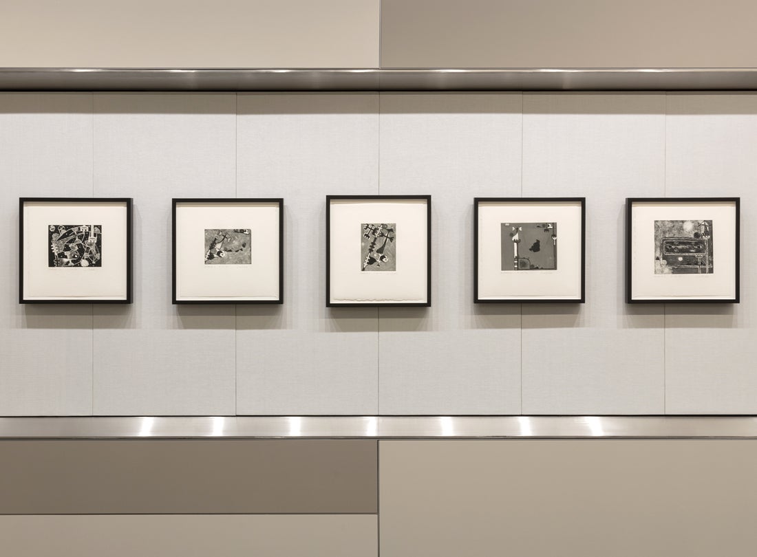 Frank Lobdell began what has come to be known as the Yale Portfolio during a two-day printmaking workshop at Yale University on February 6 and 7, 1992. The five mono-chromatic intaglio prints that make up this series all contain a fantastical landscape of abstract signs and symbols that are characteristic of the artist’s later work. Lobdell was a significant artist in West Coast Abstract Expressionism and the Bay Area Figurative Movement and a popular instructor at the California School of Fine Art (now the San Francisco Art Institute) from 1957 through 1965.